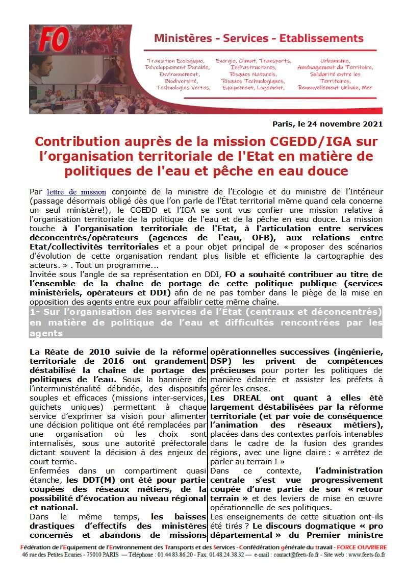 Politiques de l’Eau vues des DDT, DREAL et opérateurs: FO porte ses constats et propositions à l’Inspection CGEDD/IGA