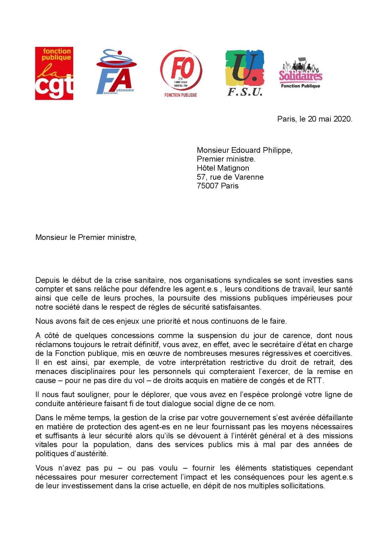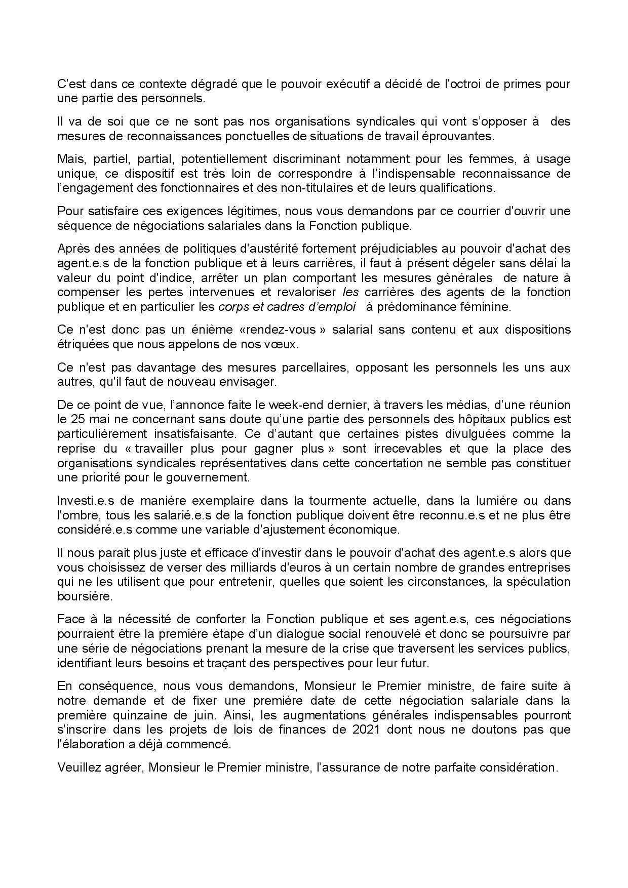 POUR l’ouverture d’une négociation salariale dans la Fonction Publique: 5 organisations syndicales écrivent au Premier ministre Communiqué 20 mai 2020 Malvina Caubère