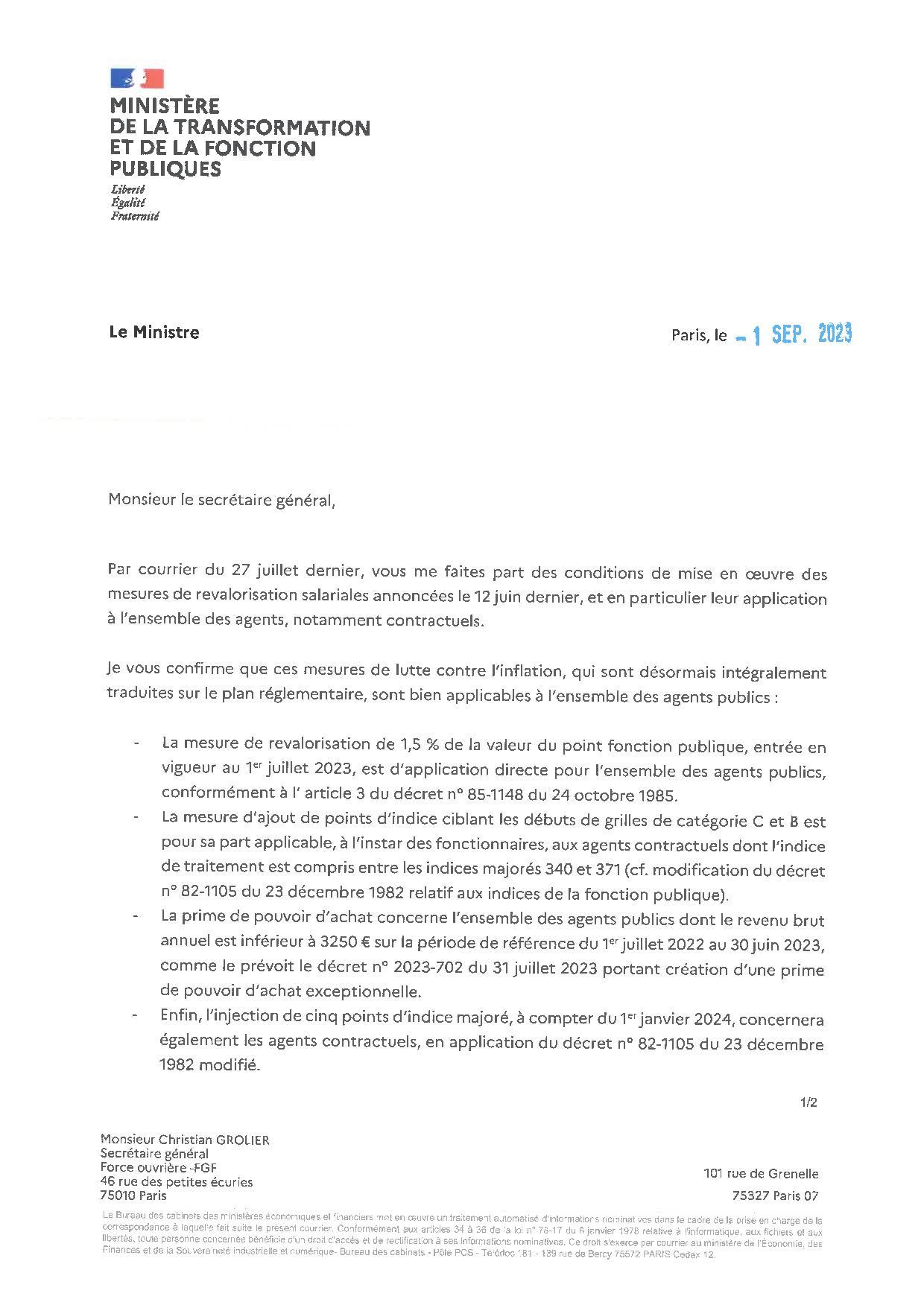 Retouvez ci-après la réponse apportée à FO par le ministre de la Fonction Publique, apportant des précisions importantes pour les agents publics non-titulaires. Alors même que nombre d’employeurs estimaient jusque là que ces derniers n’étaient pas éligibles aux mesures salariales générales annoncées en juin. Assurément pas de quoi faire face à l’inflation, mais la réparation d’une injustice qui aurait été majeure.