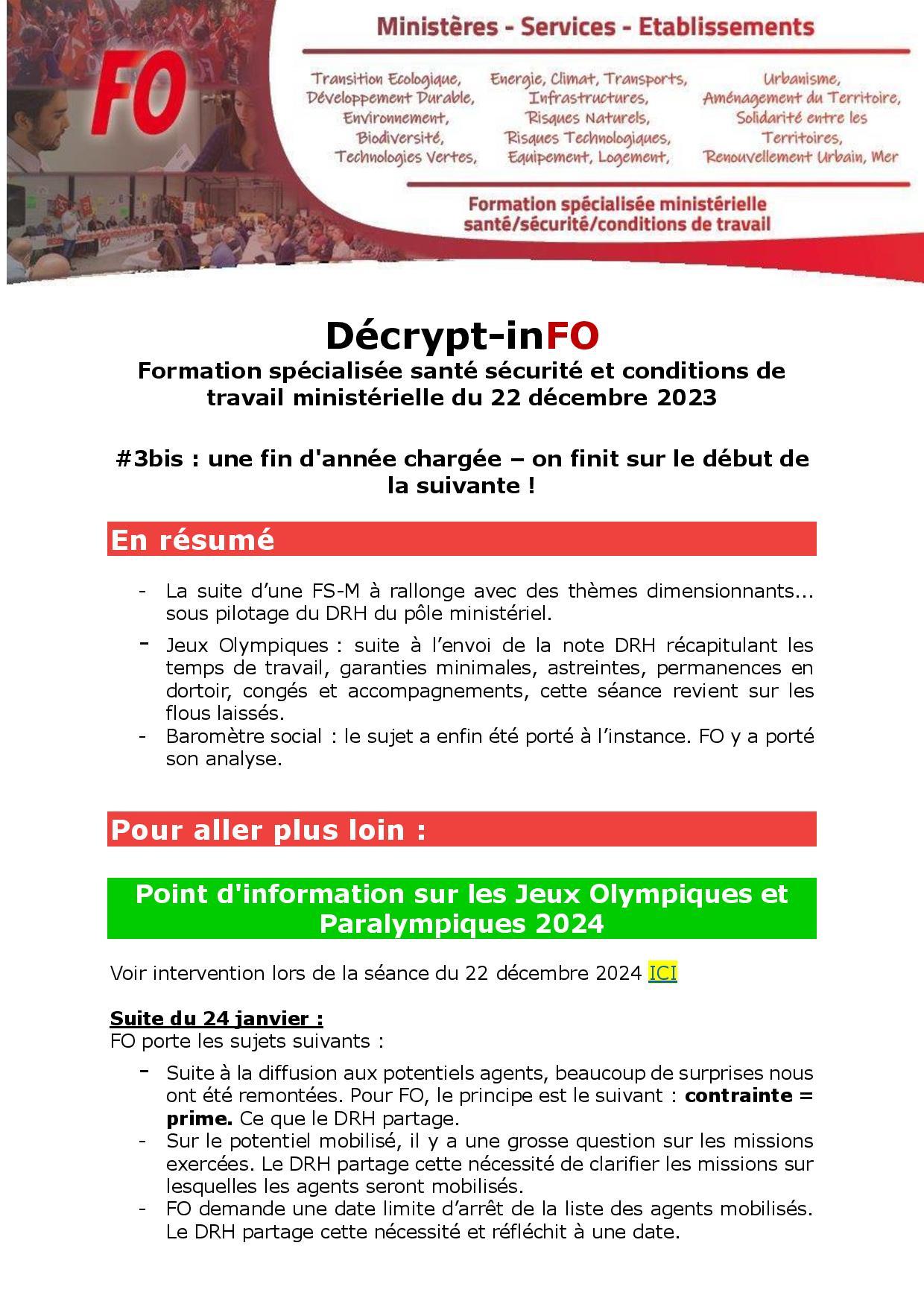 Retrouvez ci-après le décrypt-inFO issu des débats de la formation spécialisée SSCT ministérielle du 24 janvier 2024 (reconvocation de la réunion du 22 décembre dont l’ordre du jour n’a pu être épuisé).