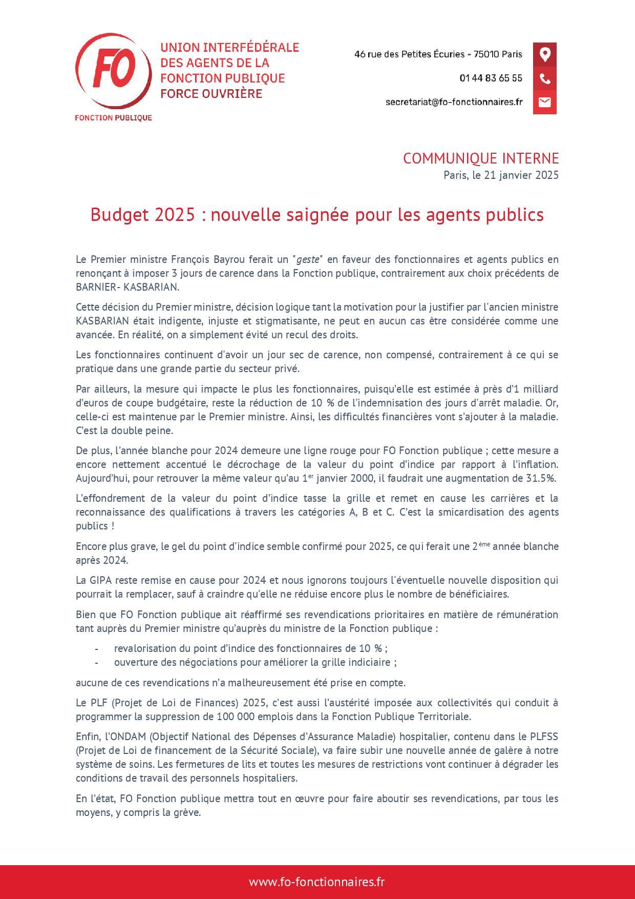 Projet de Loi de Finances = Punir Les Fonctionnaires