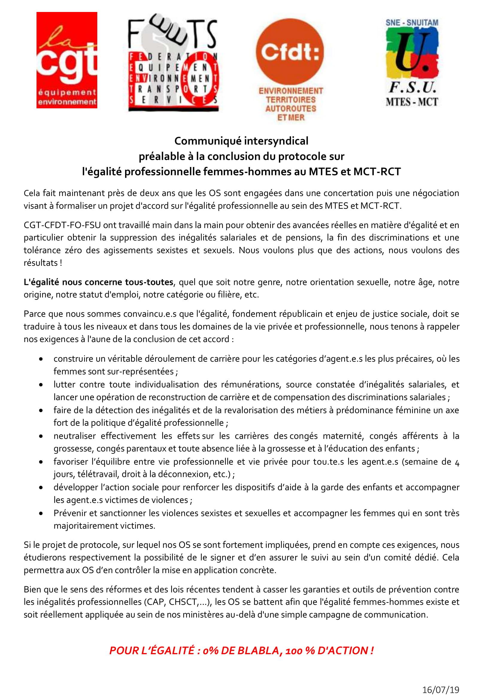 Protocole sur l’égalité professionnelle: les conditions posées par CGT – FO – CFDT -FSU