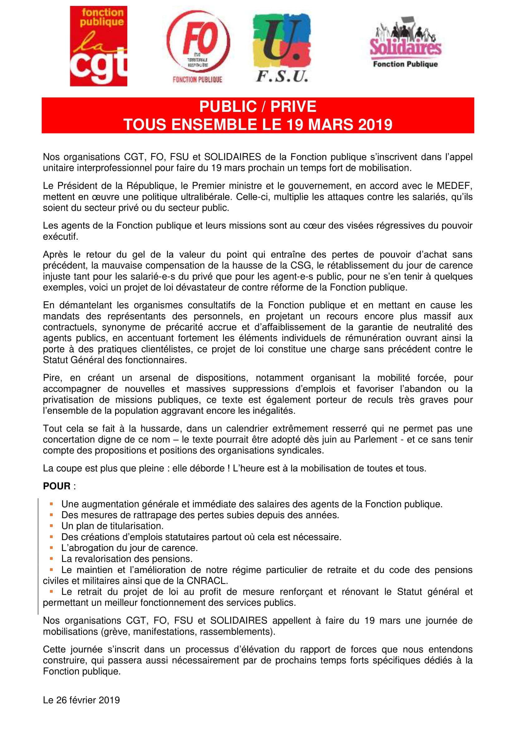 Public-Privé: tous ensemble le 19 mars!