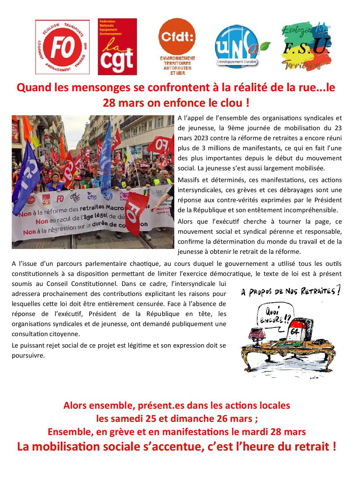 Quand les mensonges se confrontent à la réalité de la rue…le 28 mars on enfonce le clou ! Communiqué 24 mars 2023 Malvina Caubère Cliquez ICI