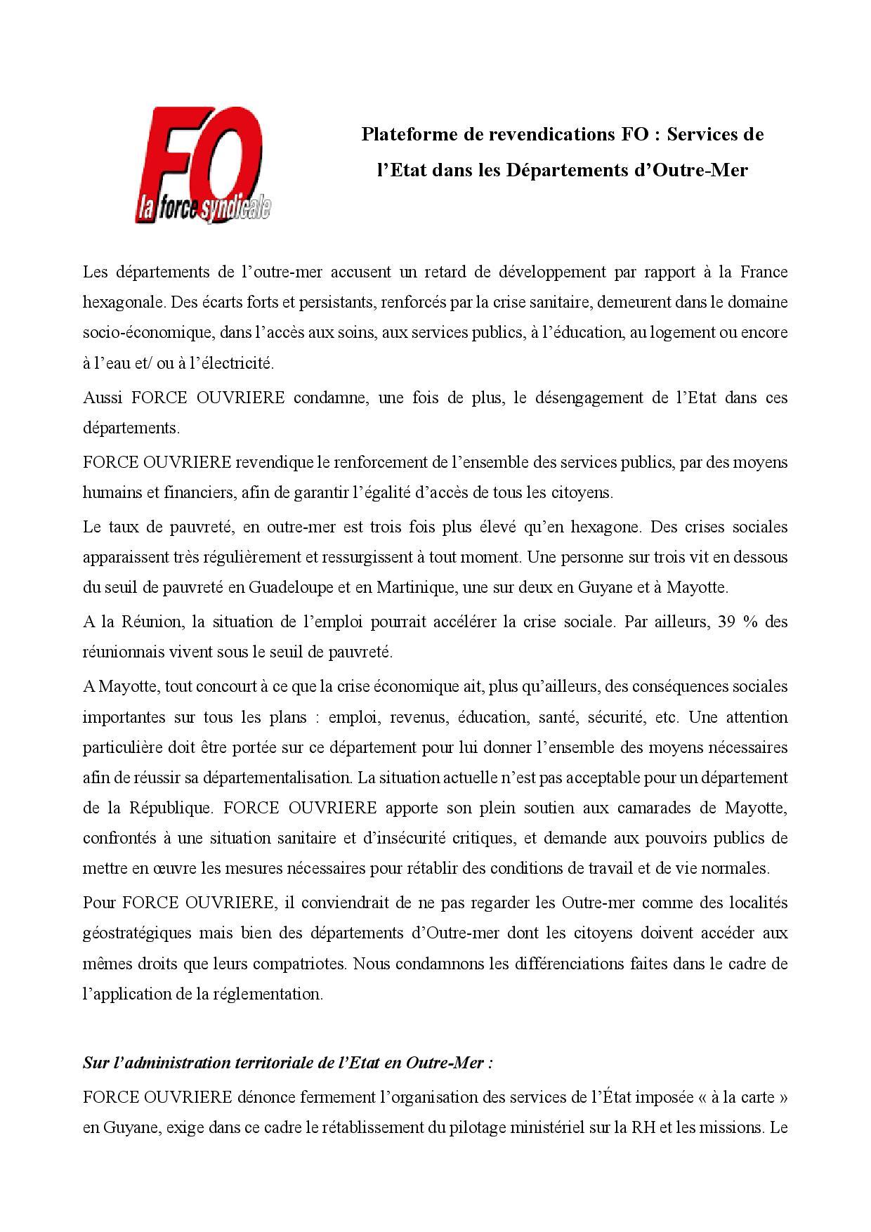 A cet effet, FO a formalisé sa plate-forme de revendications globale dédiée à l’Outre-Mer (consultable ICI), et attend sa prise en compte de la part du gouvernement.