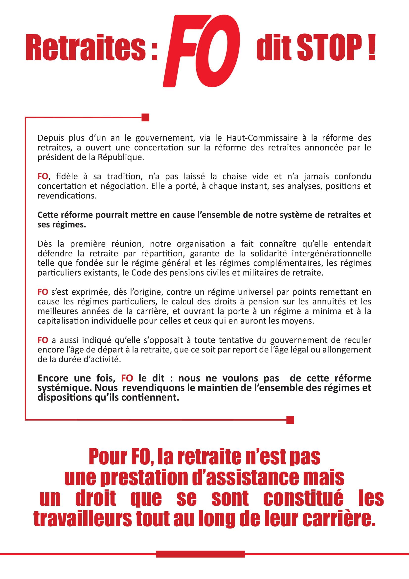 Retrouvez ICI le communiqué « Retraites: FO dit STOP! »