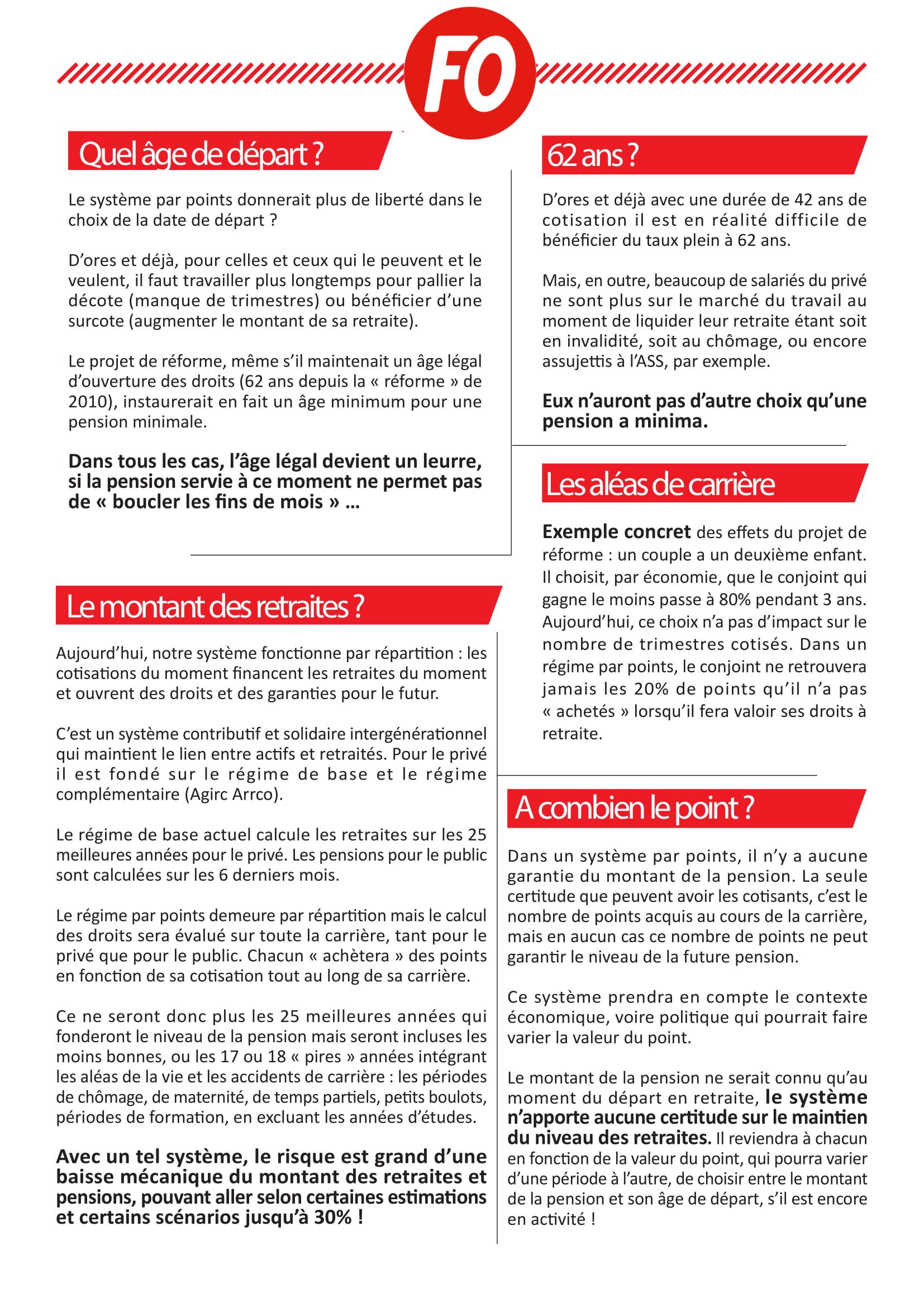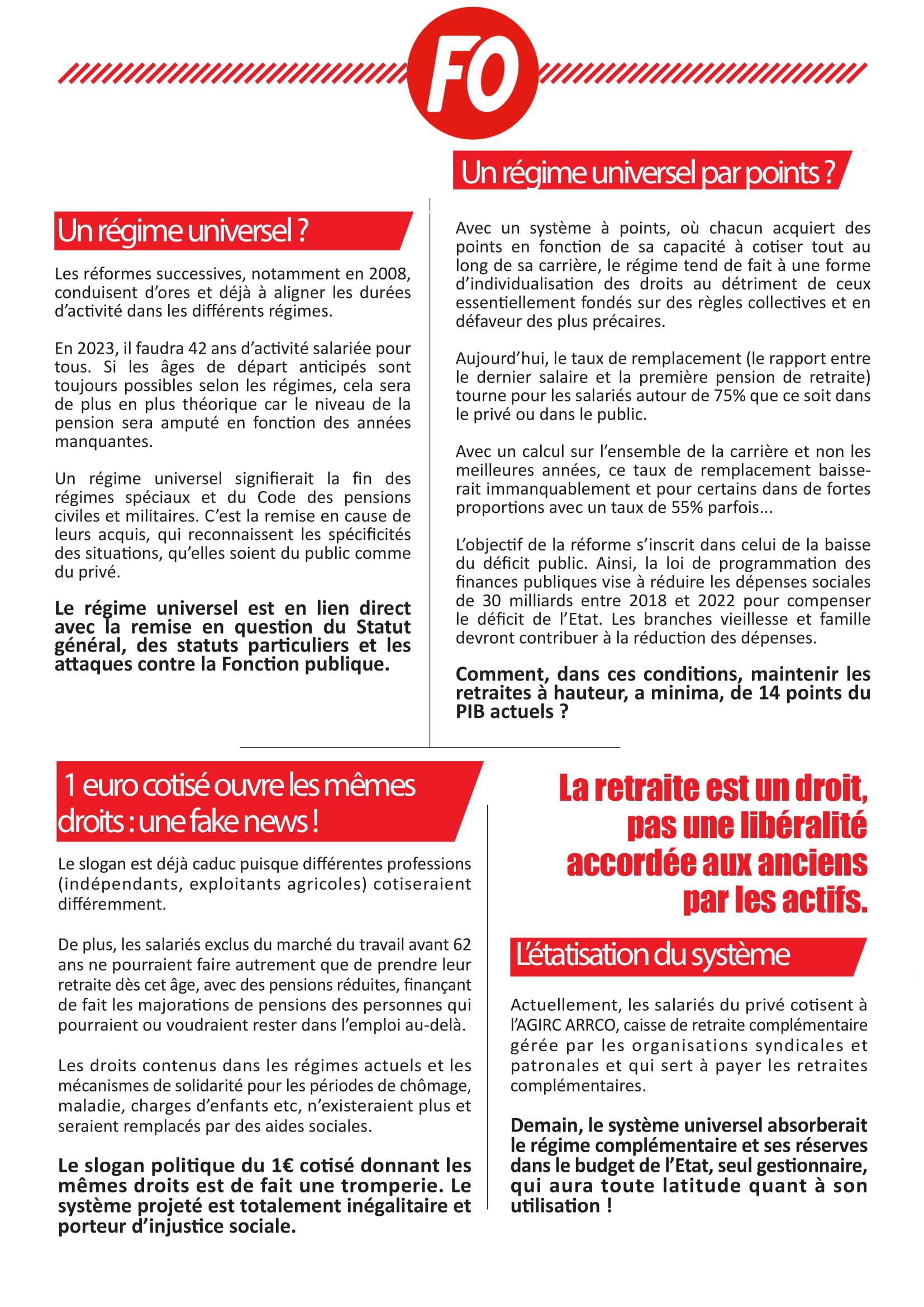 Pour FO, la retraite n’est pas une prestation d’assistance mais un droit que se sont constitué les travailleurs tout au long de leur carrière.