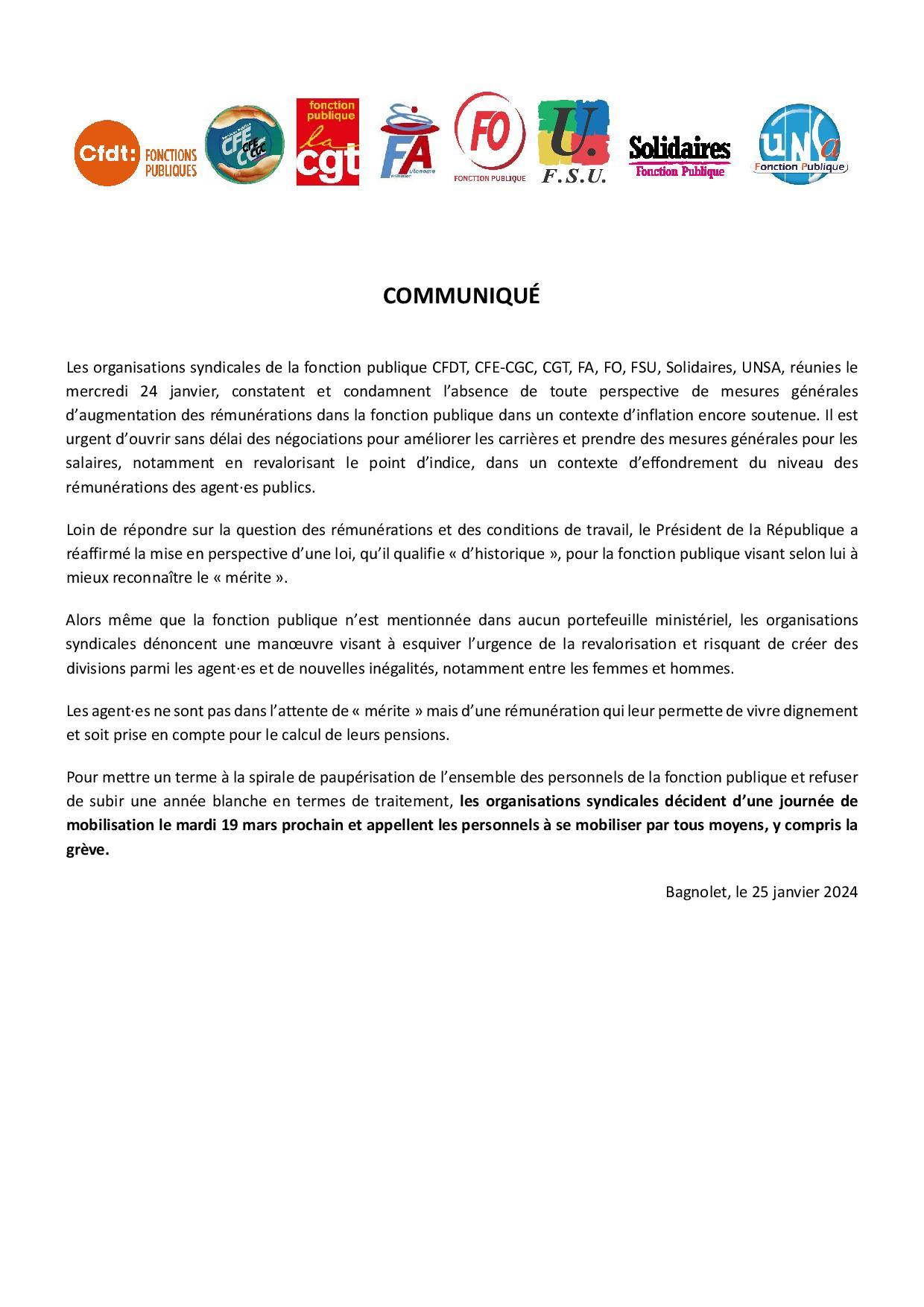 Salaires dans la Fonction Publique: l’appel unitaire à la mobilisation le 19 mars 2024