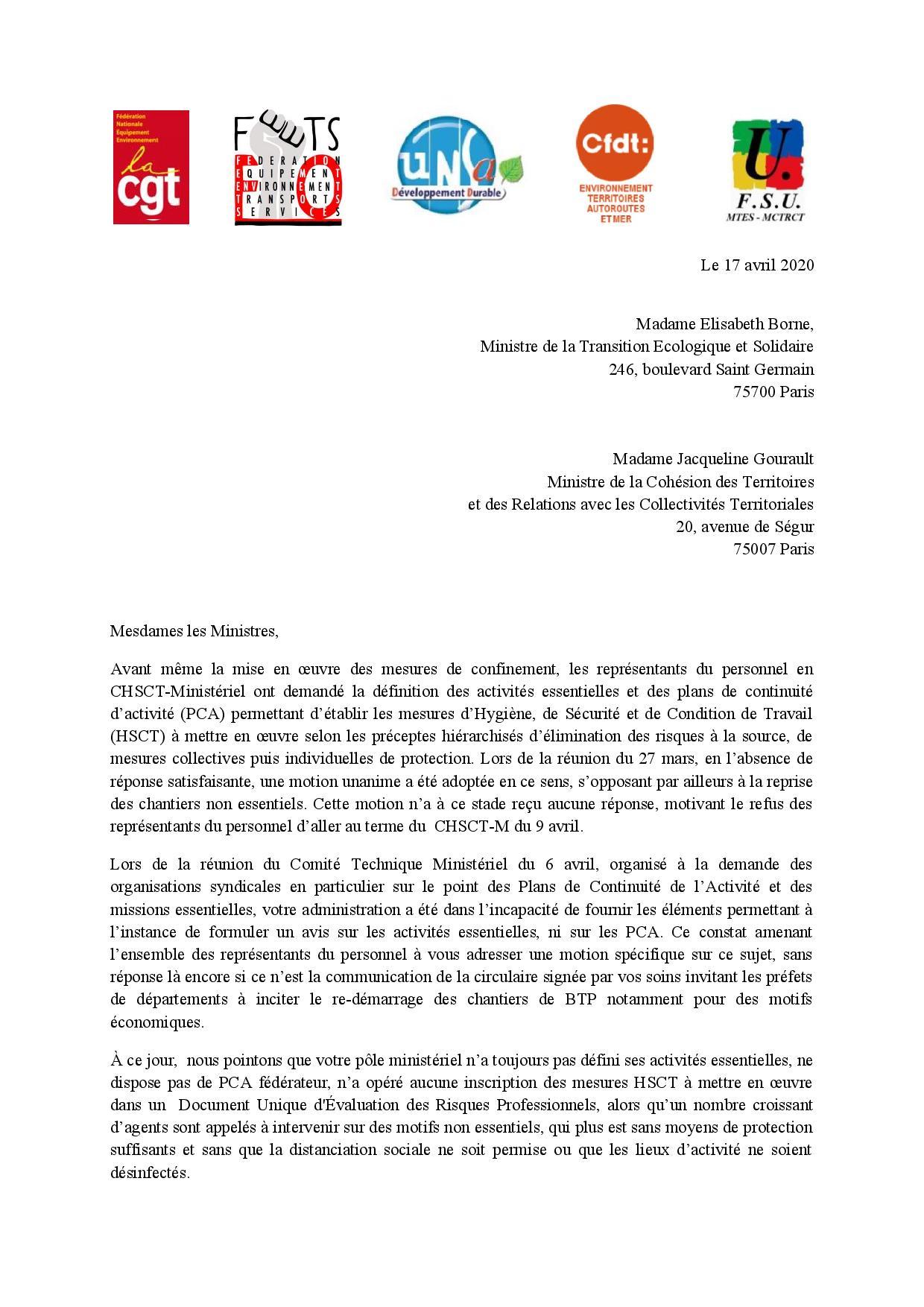 Communiqué 17 avril 2020