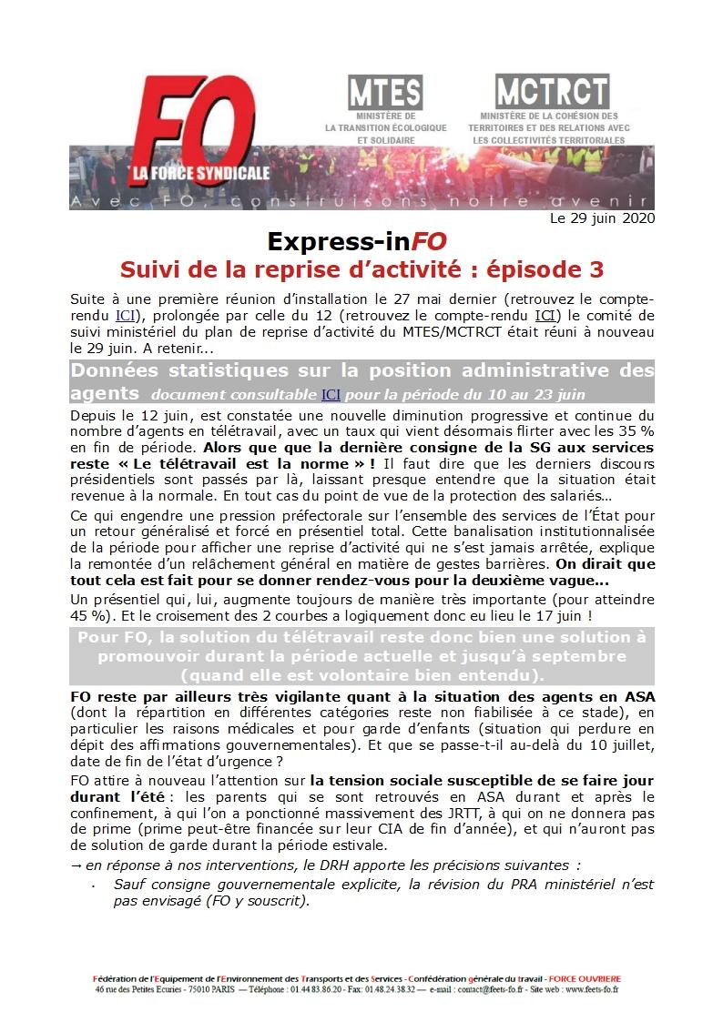 Suivi de la reprise d’activité au MTES-MCTRCT : épisode 3