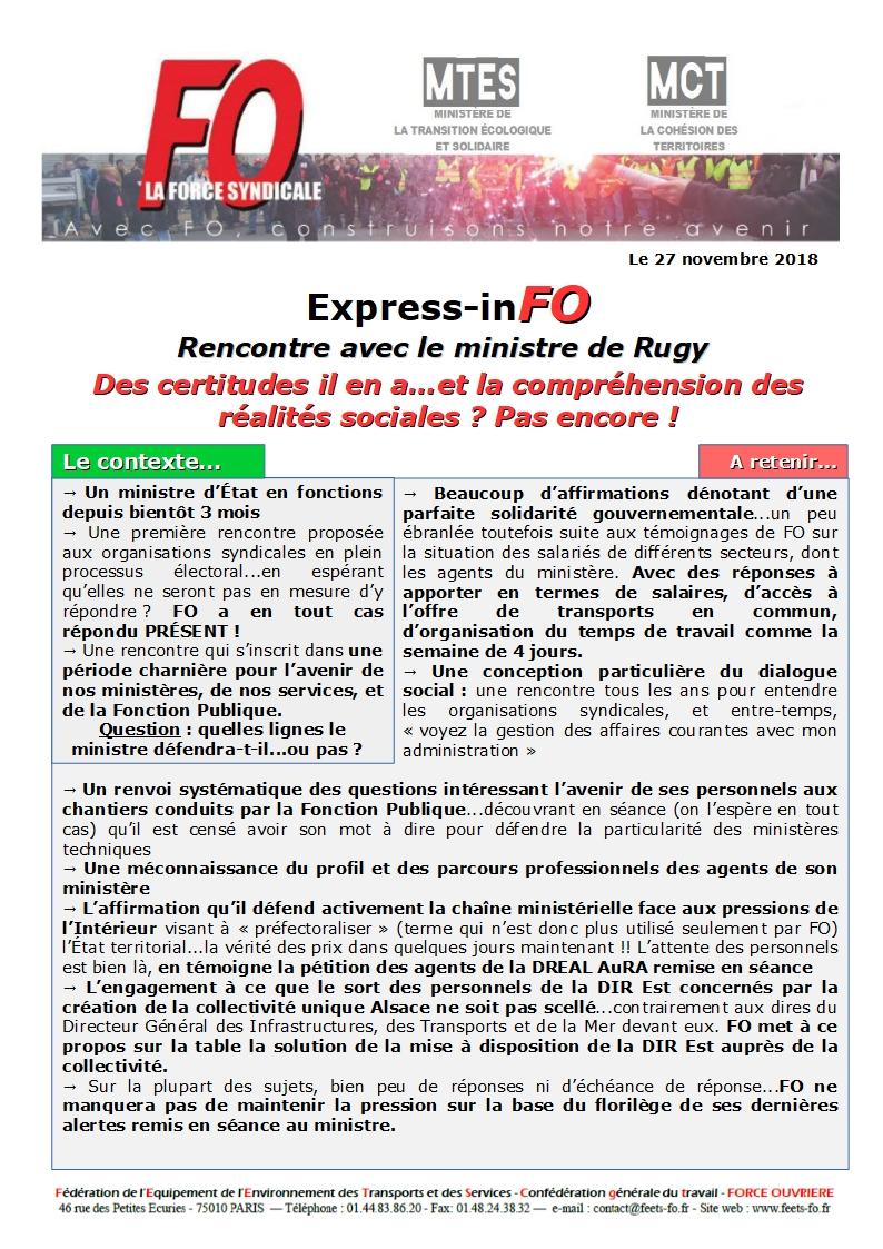 Vous trouverez ci-joint notre Express-inFO issu de l’entretien du 26 novembre 2018 avec le ministre De Rugy.
