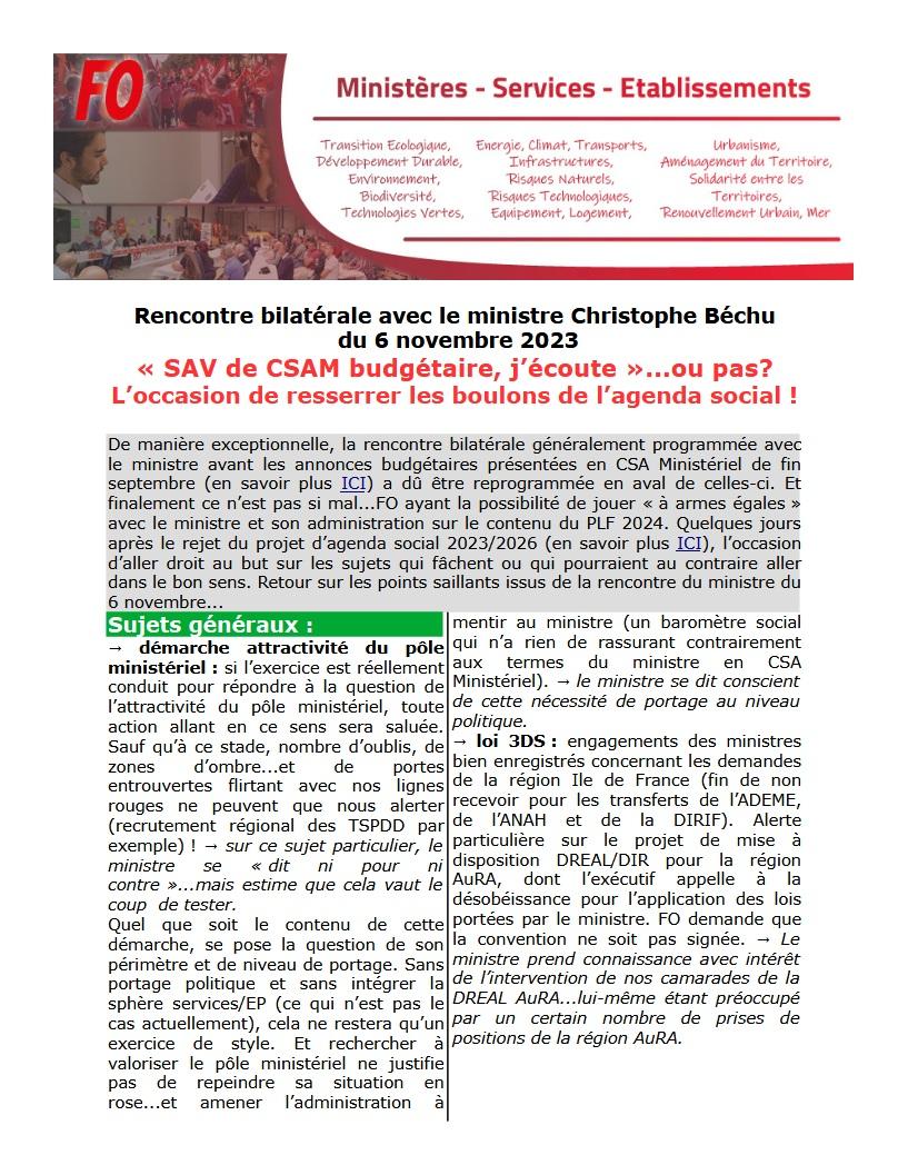 Rencontre bilatérale avec le ministre Béchu: « SAV de CSAM budgétaire, j’écoute »…ou pas?