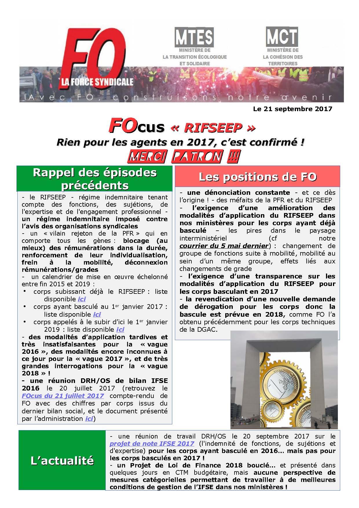 Retrouvez ci-après notre FOcus « RIFSEEP » relatif à la réunion du 20 septembre 2017.