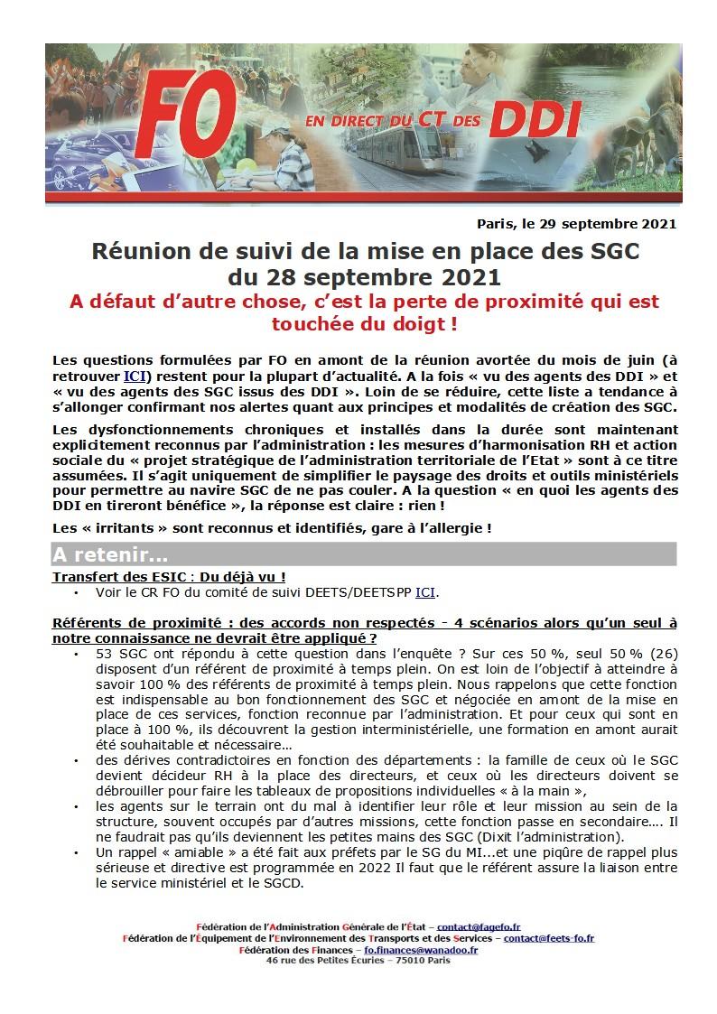 Les questions formulées par FO en amont de la réunion avortée du mois de juin (à retrouver ICI) restent pour la plupart d’actualité. A la fois « vu des agents des DDI » et « vu des agents des SGC issus des DDI ». Loin de se réduire, cette liste a tendance à s’allonger confirmant nos alertes quant aux principes et modalités de création des SGC.