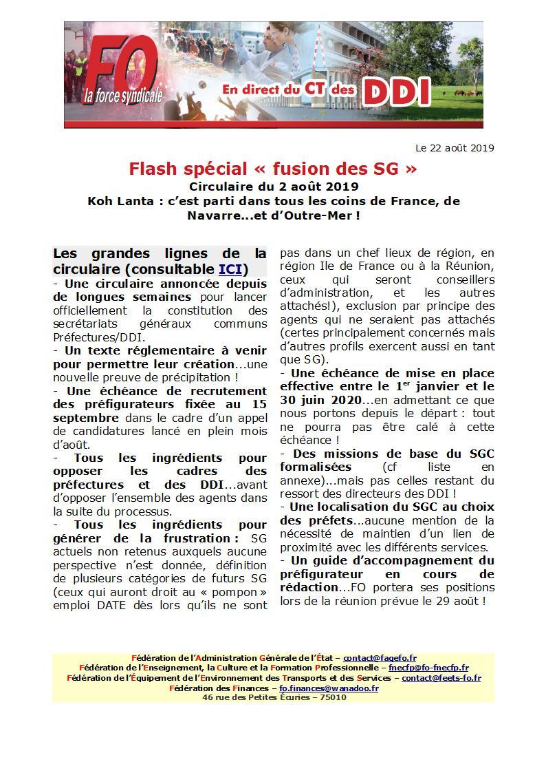 FO combat les effets induits par la mise en place des SGC au niveau départemental, et s’oppose à l’extension de la « tache d’huile » aux directions ministérielles.