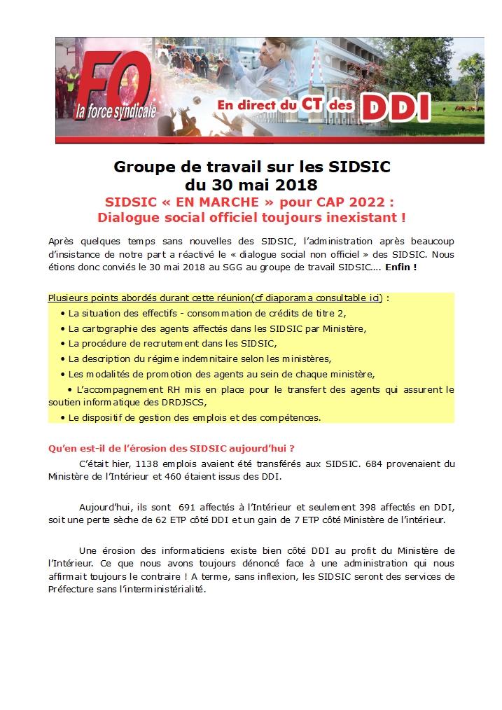 SIDSIC « EN MARCHE » pour CAP 2022 : Dialogue social officiel toujours inexistant ! Laurent Janvier Le 1 juin 2018 Laurent Janvier Le 1 juin 2018 Retrouvez ci-dessous le compte rendu du GT SIDSIC du 30 mai 2018! Cliquez ICI! Documents liés reunion-OS-SIDSIC-30052018 PDF — 257 Ko LJ_18023_CR-FOGT-SIDSIC-du-30-mai-2018 PDF — 2 Mo