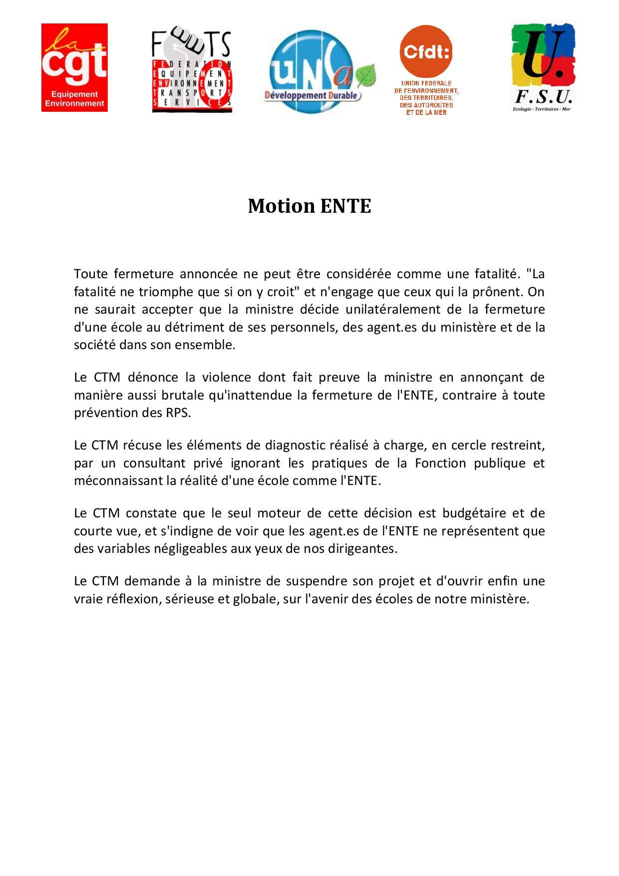 Et un point qui s’est invité en ouverture du CTM: l’adoption d’une motion unitaire pour défendre l’Ecole Nationale des Techniciens de l’Equipement.
