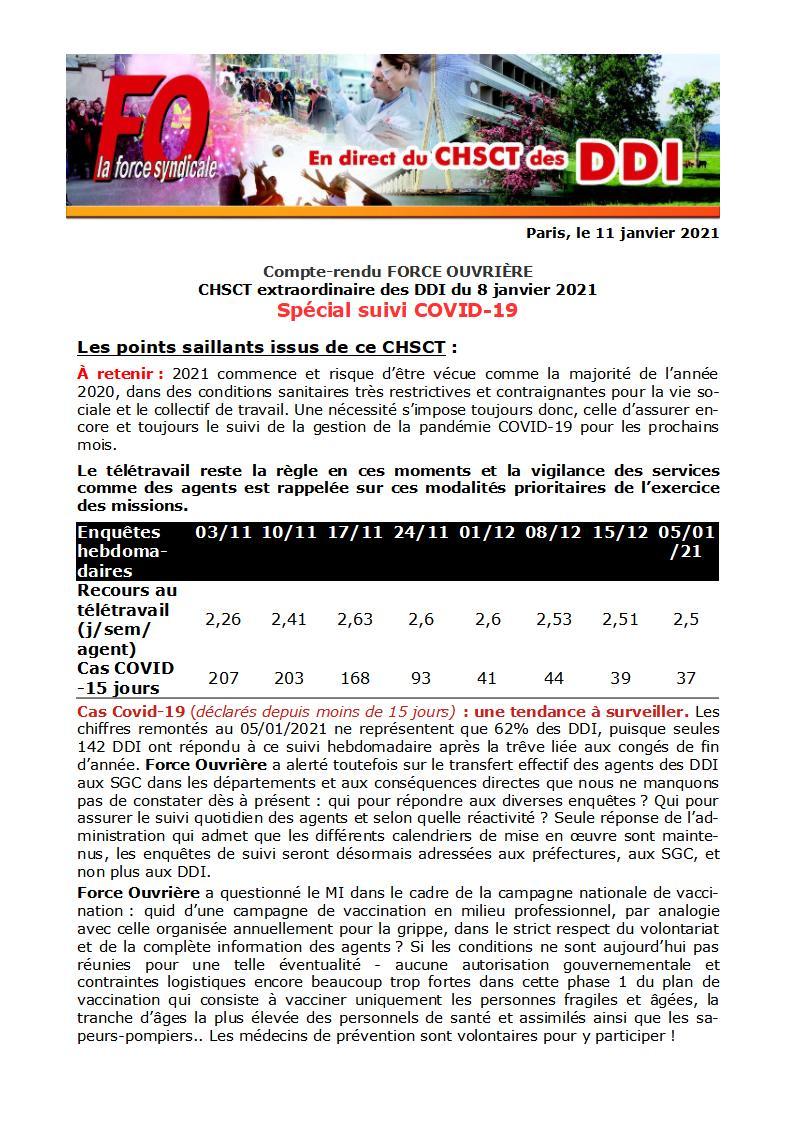 Retrouvez ICI le compte-rendu de la réunion exceptionnelle du CHSCT des DDI du 8 janvier 2021.