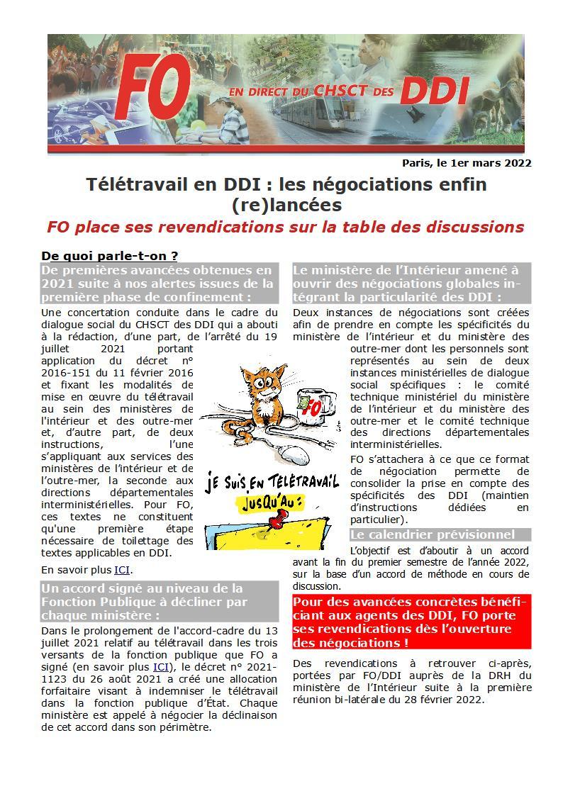 Pour des avancées concrètes bénéficiant aux agents des DDI, FO porte ses revendications dès l’ouverture des négociations relancées en DDI, en déclinaison de l’accord Fonction Publique de juillet 2021.