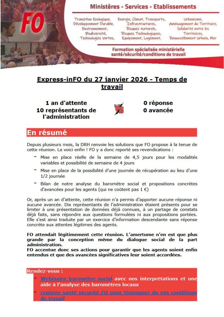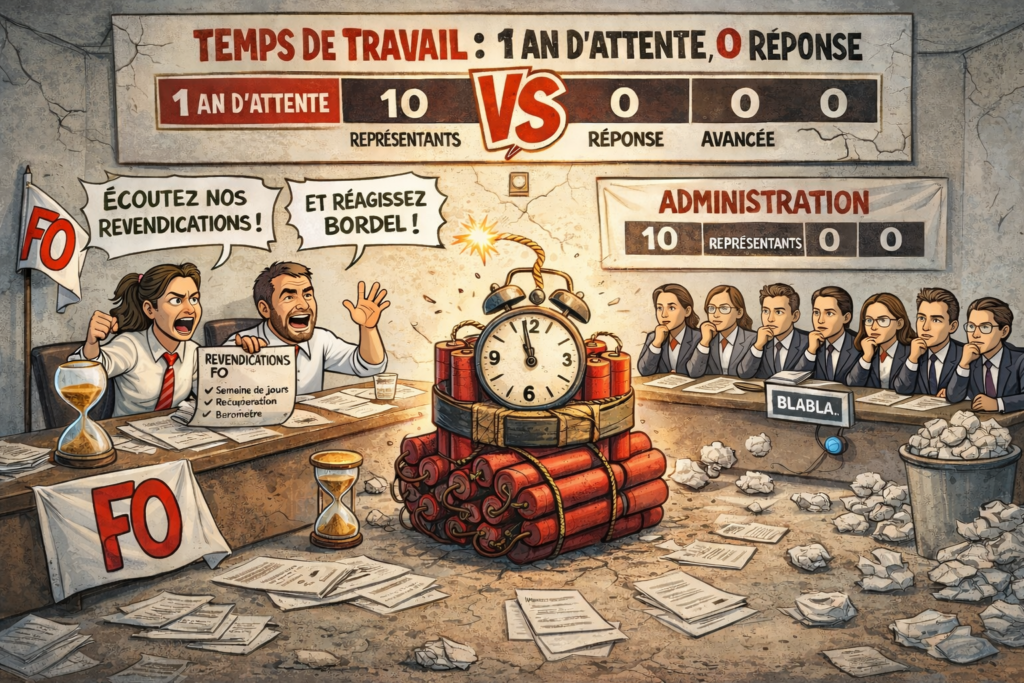 Après un an d’attente, la réunion avec la DRH sur le temps de travail n’a débouché sur aucune réponse concrète aux revendications portées par FO.