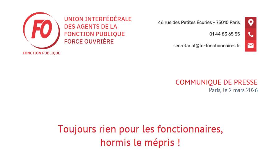 Pour FO Fonction publique, la seule solution pour faire reculer ce gouvernement et sa politique régressive portée par la Loi de finances de 2026, c’est d’informer, mobiliser et préparer le rapport de force au plus vite.