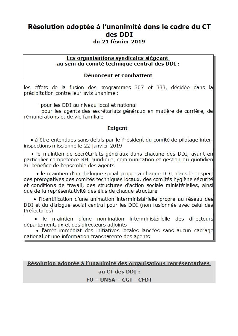 En réponse à l’inquiétude manifestée au travers des différentes remontées du terrain, FO a pris l’initiative ce matin de proposer l’adoption par le CT des DDI d’une résolution dédiée au projet de transfert des SG des DDI sous autorité du ministère de l’Intérieur et en préfecture.
