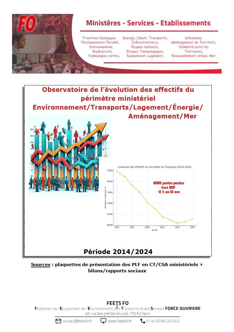 En ouverture, FO remet son observatoire de l’évolution 2014/2024 des effectifs du pôle ministériel Ecologie/Transports/Logement/Energie/Mer, ainsi que ses derniers communiqués thématiques.
