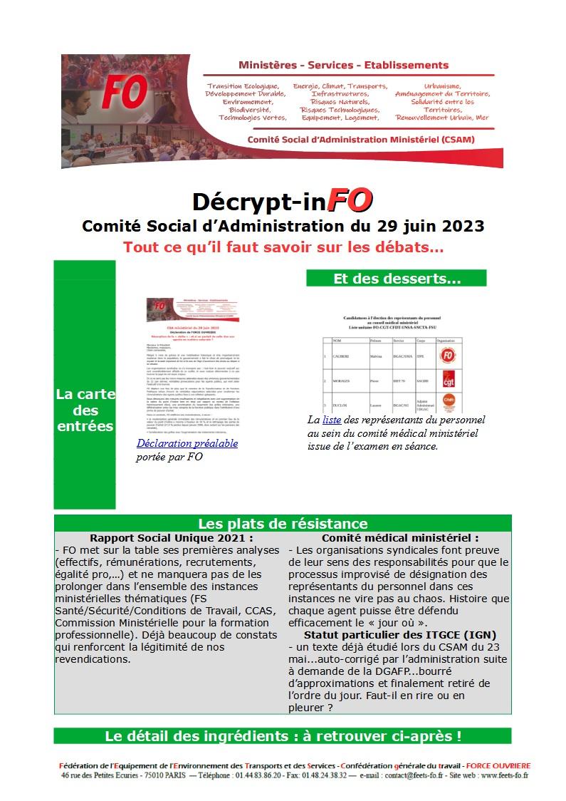 Retrouvez ci-après le décrypt’inFO issu des débat du Comité Social d’Administration Ministériel du 29 juin 2023.