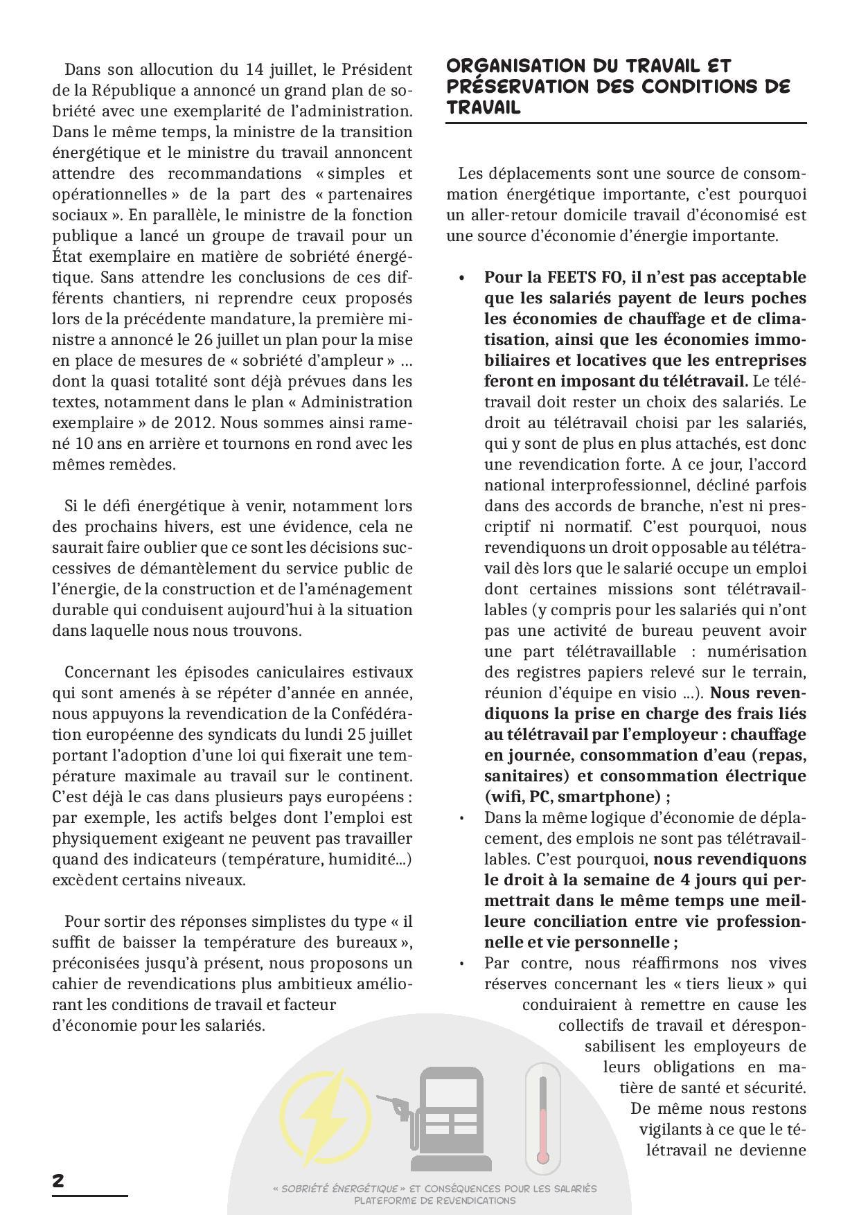 « Sobriété énergétique » et ses conséquences financières et sur les conditions de travail des salariés: la FEETS-FO porte ses revendications ICI (plate-forme remise en mains propres au ministre Béchu lors de la rencontre bi-latérale du 6 septembre 2022).
