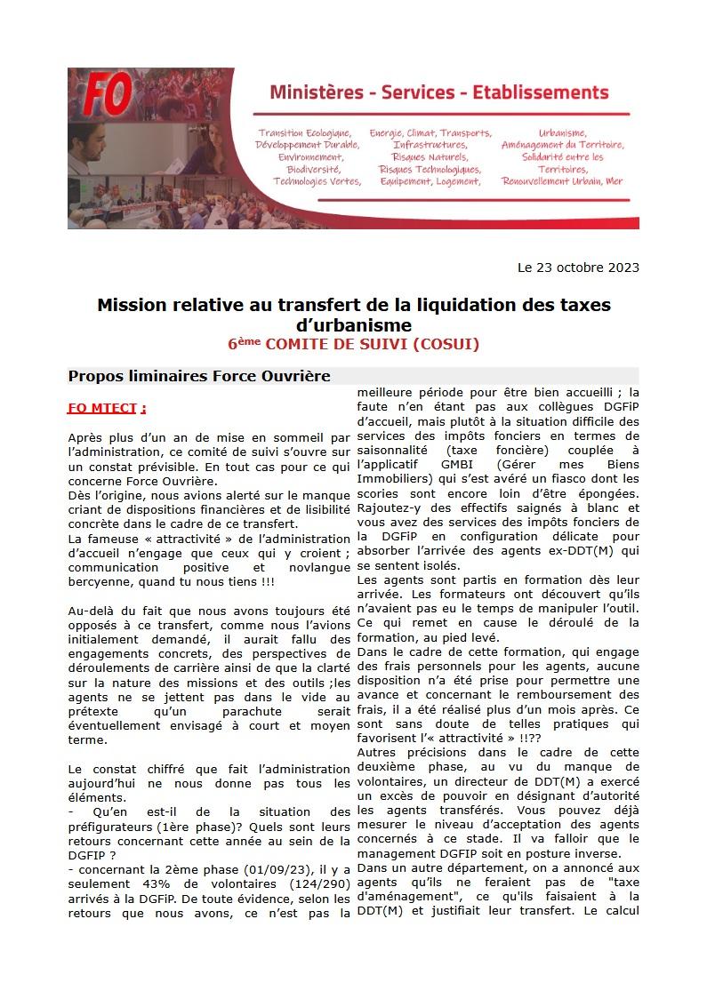 Retrouvez ci-dessous le compte-rendu du 6ème Comité de Suivi relatif au transfert des missions de liquidation des taxes d’urbanisme. Un nouvel épisode du FiasCOSUI TAM!